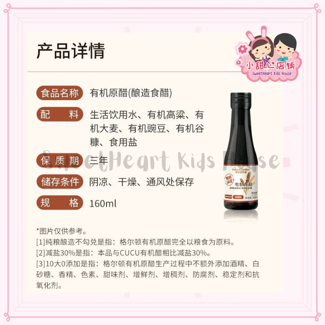 Baby Guardian Baby Organic Vinegar Baby Sauce Baby Seasoning 宝宝格尔顿有机原醋 宝宝调味 12M+