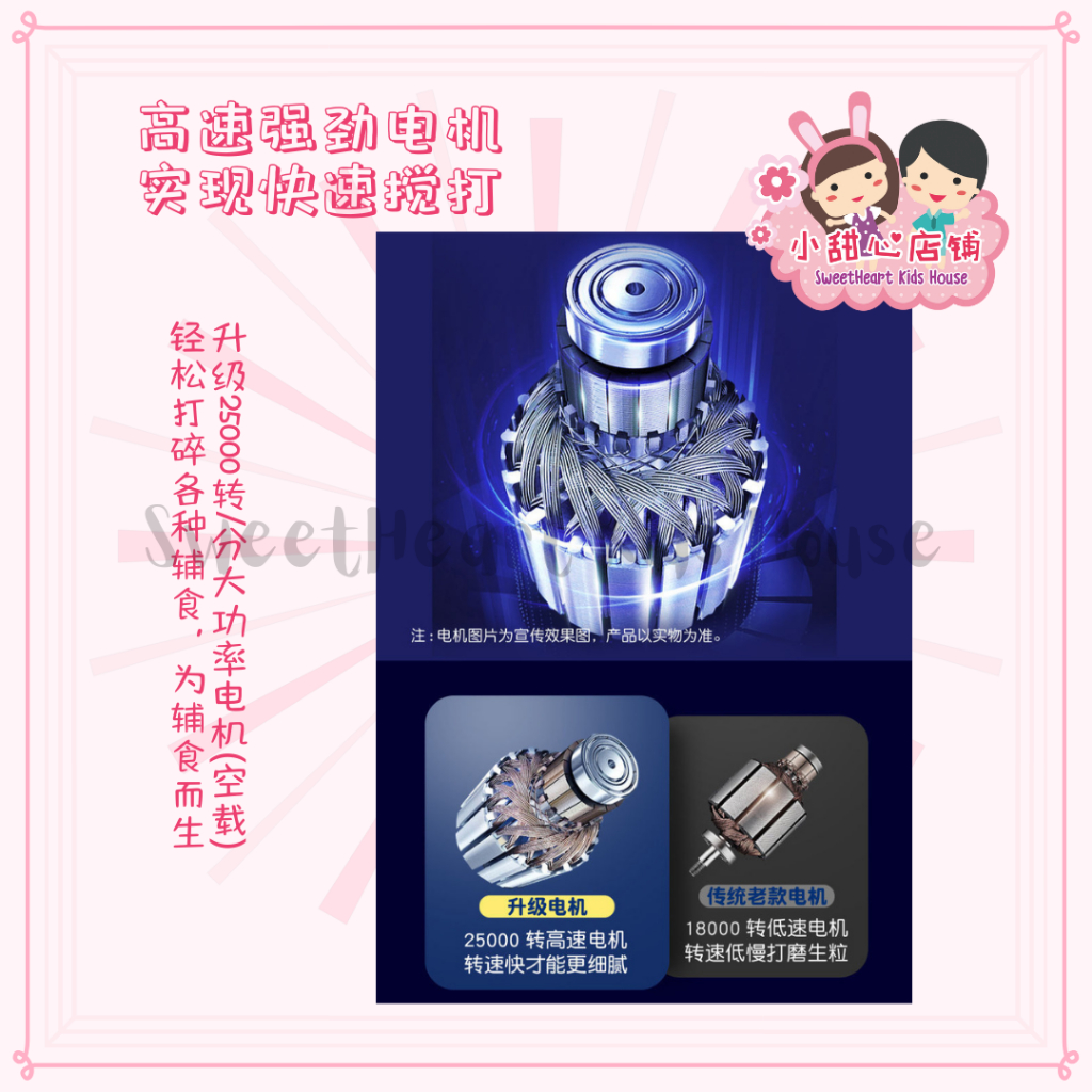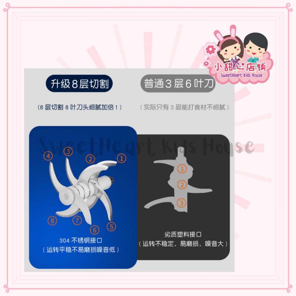 【Product Description】: Baby food processor is an essential kitchen appliance for today. It helps babies absorb nutrients better as well as reducing the time preparation of baby foods for mummies. It is not only let the food even more delicate, but it can be use as a food blender to blend garlic, meat, pumpkin as well as a fruit blender to blend juice.