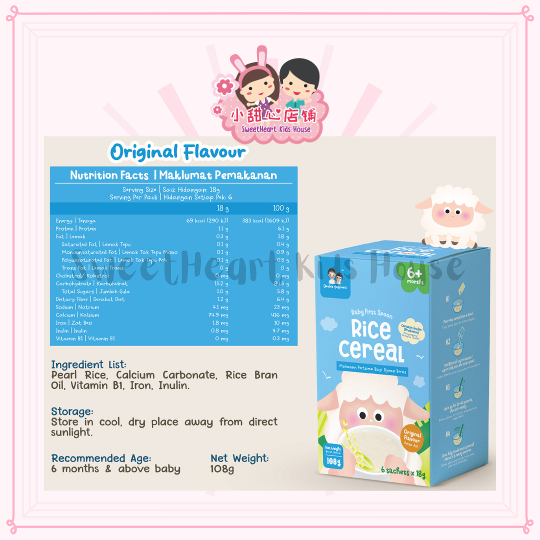 Packed in convenient sachets, this rice cereal come with 3 flavour brown rice, original, corn and it is quick to prepare.
