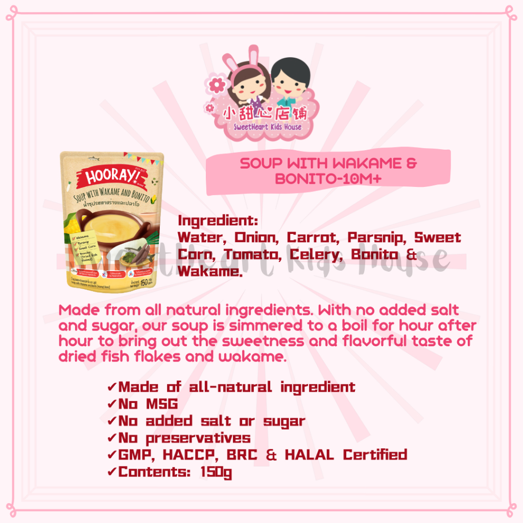 Hooray Soup Vegetable Broth, Fish Seaweed Soup, 2 Flavors, Size 150 g.